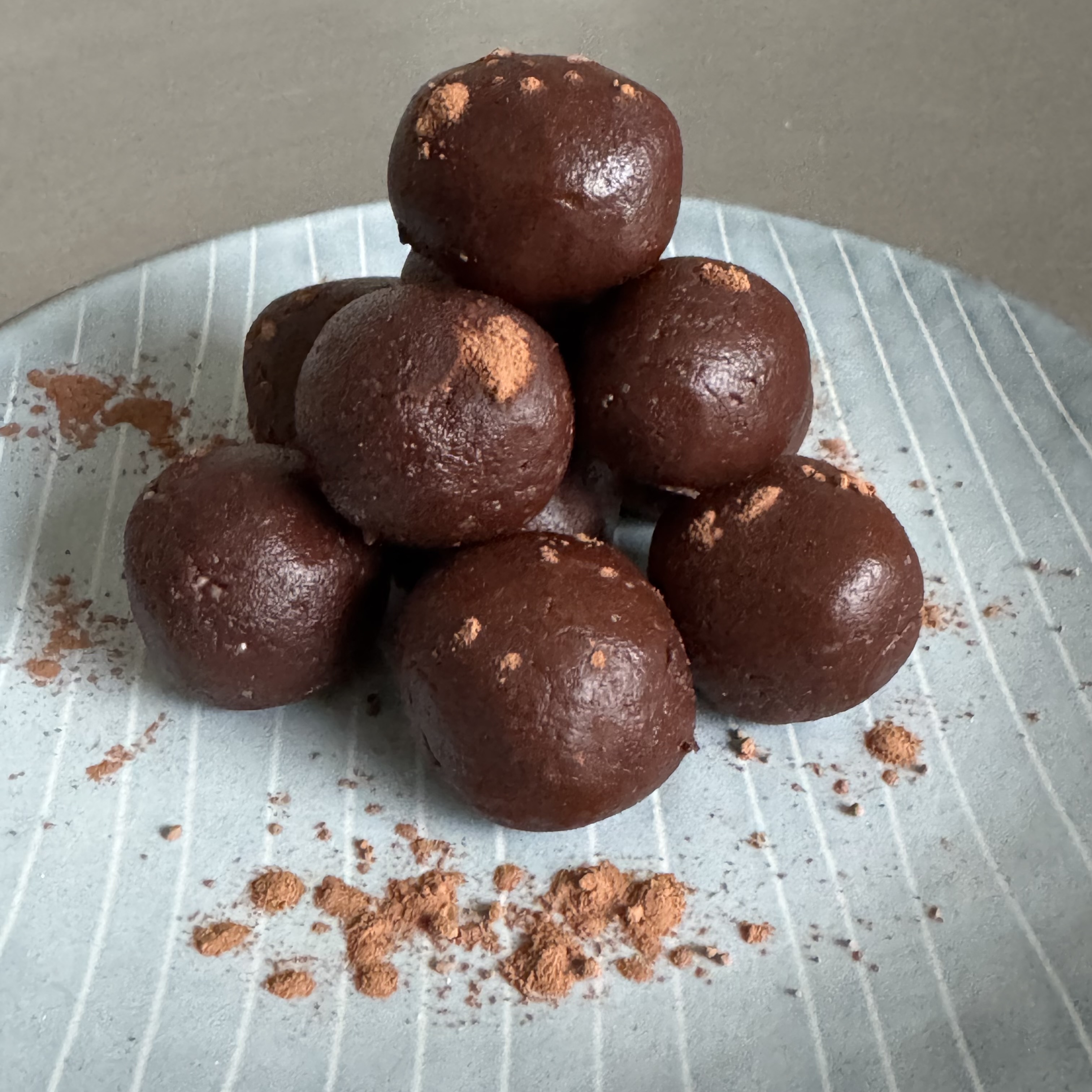 Delicious chocolate and date truffles for dessert, with coffee or tea. Sugar-free, lactose-free, and ready in a flash!